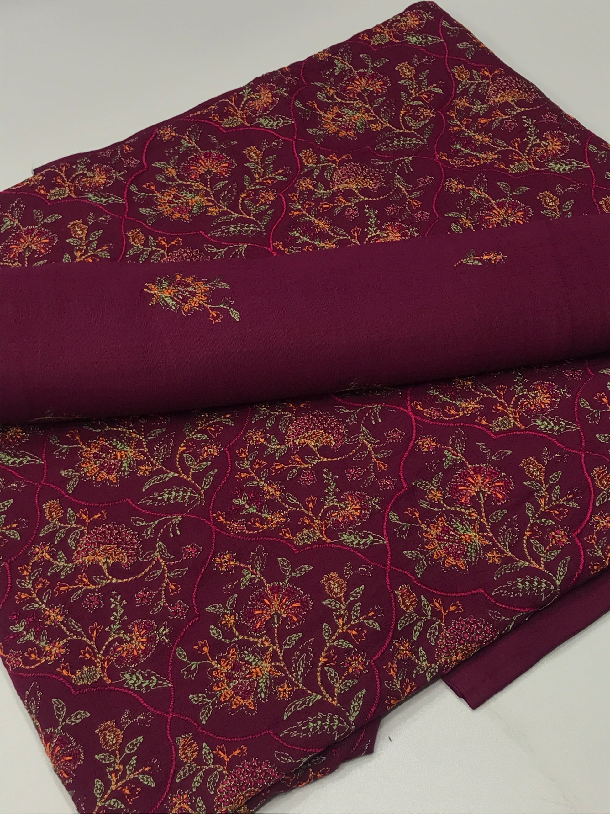 Shirt Fabric: 2.75 meter Karandi – Front full embroidered, back and sleeves with small boti design.