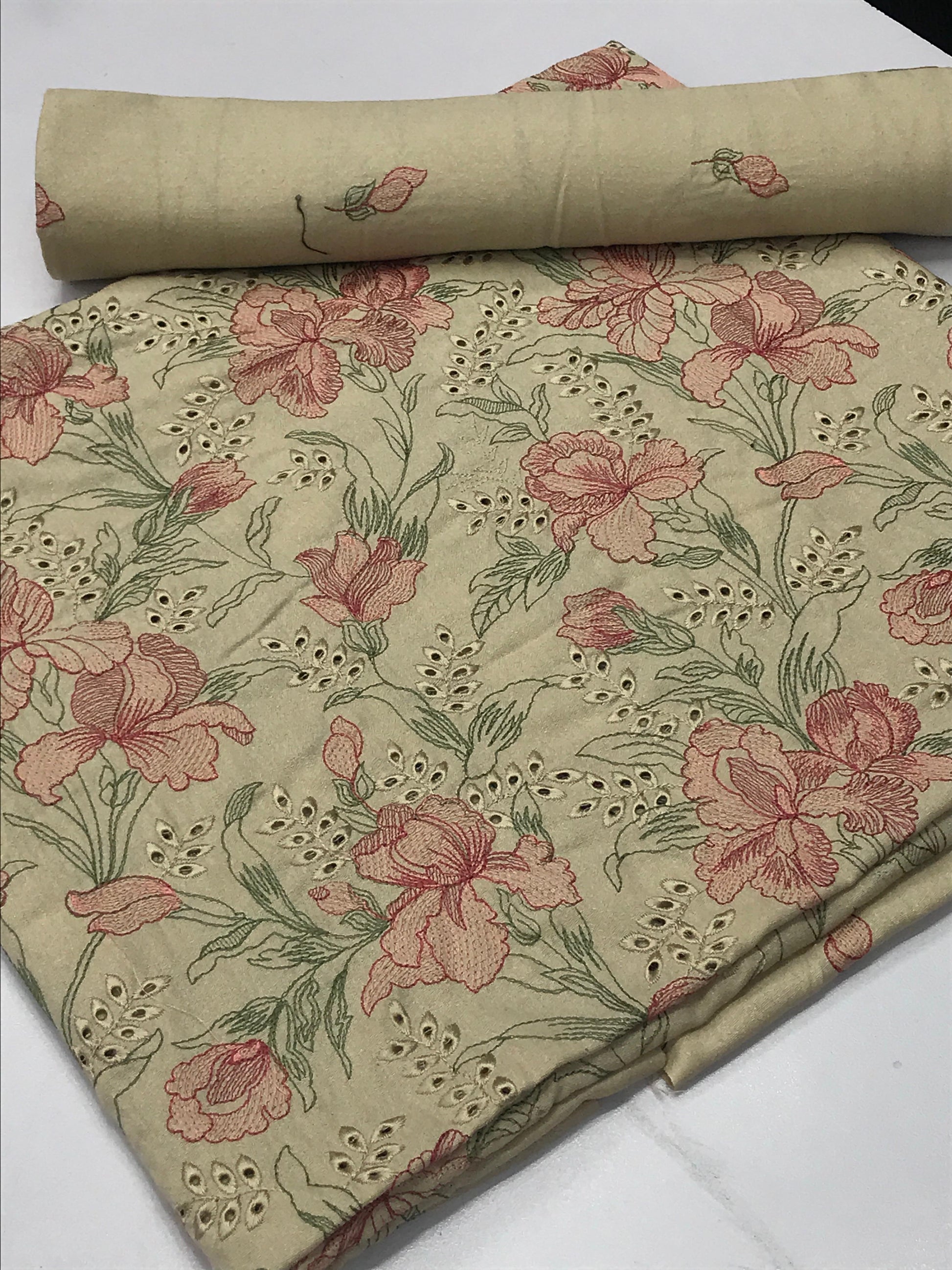Shirt Fabric: 2.75 yard Karandi – Front full embroidered, back and sleeves with small boti design.